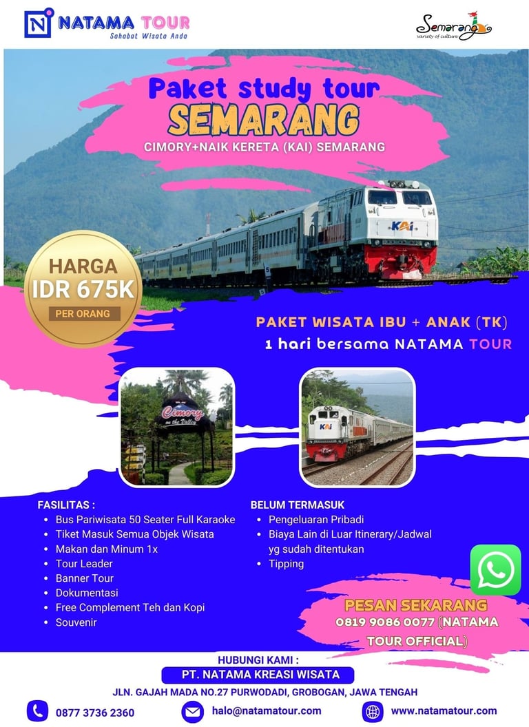 Cimory menawarkan wisata edukasi dan rekreasi keluarga dengan suasana alam dan produk olahan susu, ditambah pengalaman naik kereta KAI Semarang yang memberikan perjalanan nyaman sekaligus seru sebagai bagian dari wisata.
