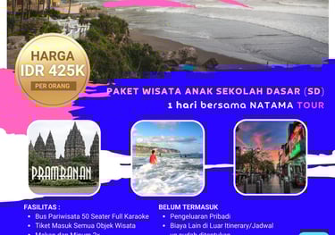 Suatu perjalanan wisata untuk anak anak SD dengan tujuan edukasi mengenal beberapa ilmu pengetahuan tentang warisan budaya yaitu candi hindu terbesar di Indonesia terletak di Yogyakarta , menawarkan pengalaman edukatif dan rekreas.